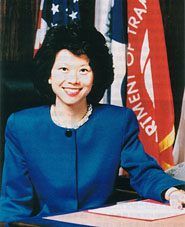現(xiàn)在,擁有哈佛大學(xué)商學(xué)院碩士學(xué)位的趙小蘭忽然成為華盛頓的政治新星,雖然顯得陰差陽錯(cuò),并且不無臨危受命的味道,但是對(duì)于美國(guó)華人世界乃至整個(gè)亞裔社會(huì),依然具有不可估量的影響。她不僅是美國(guó)有史以來第一位華裔內(nèi)閣部長(zhǎng),再加上出任運(yùn)輸部長(zhǎng)的日裔峰田,那么布什政府就打破美國(guó)200多年來的紀(jì)錄:同時(shí)擁有兩位亞裔背景的內(nèi)閣部長(zhǎng)。