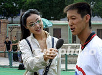 圖:影視明星劉蓓客串主持 2001年6月11日 09:02 ![]() 6月9日,加入“萬里行”車隊(duì)的影視明星劉蓓客串主持,采訪甘肅男子曲棍球隊(duì)。中新社圖 魏孝明 攝