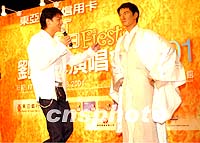 組圖:劉德華在港時代廣場為其蠟像揭幕 2001年06月30日 21:12 ![]() 香港著名男歌星劉德華30日在時代廣場為其蠟像揭幕。劉德華是首位獲倫敦杜莎夫人蠟像館制作的香港歌手。首次與自己的蠟像見面的劉德華欣喜的為蠟像整裝。中新社傳真洪少葵攝 ![]() 亞洲樂壇巨星劉德華30日在時代廣場為其蠟像揭幕時,擁吻蠟像館外籍女工作人員,令其開心不已。中新社傳真洪少葵攝