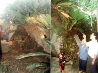 圖:江西一村落發(fā)現(xiàn)巨形鐵樹 2001年07月12日 09:41 ![]() 江西省吉水縣盤谷鎮(zhèn)谷村,近日發(fā)現(xiàn)一株形態(tài)奇特的巨形鐵樹,有關(guān)專家估測,這株長六米、徑寬近一米的鐵樹年歲在五百年以上。據(jù)說有客商要出八萬元錢收購此樹,而樹主胡桂秀認(rèn)為,鐵樹是鎮(zhèn)村之寶,不可賣出。中新社圖 張長根 攝