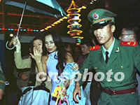 圖:韋唯在浙江湖州演出 2001年10月04日 17:34 ![]() 中國著名歌唱演員韋唯3日晚在浙江湖州演出后,由武警戰(zhàn)士護(hù)衛(wèi)從后臺走向休息室。中新社記者 趙振清 攝 |