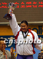 中新社鶴山十一月十五日電(記者王健)九運(yùn)會女子舉重最大體重級別的一群女大力士,今日在此間見出分曉:山東唐功紅以超世界紀(jì)錄和破全國紀(jì)錄的三百一十二點(diǎn)五的總成績,摘取七十五公斤以上級的金牌。 至此,山東舉重女將已經(jīng)在九運(yùn)會的女子舉重比賽中奪得了三個級別的冠軍。 今日這場女子最高力士之爭,從首項(xiàng)抓舉開始便早早地鎖定在悉尼奧運(yùn)會該項(xiàng)目冠軍遼寧丁美媛和身高體壯的山東名將唐功紅身上。在其他十三名對手最多舉起一百二十七點(diǎn)五公斤而結(jié)束試舉后,丁、唐二人才以一百三十公斤開舉,并在第三把雙雙沖擊由丁美媛保持的一百三十五公斤的該級別抓舉世界紀(jì)錄和全國紀(jì)錄成功,皆以一百三十七點(diǎn)五公斤的抓舉成績進(jìn)入挺舉比賽。 挺舉開始后,體重足足比丁美媛重二十公斤還多的唐功紅對自己的實(shí)力信心十足。當(dāng)丁美媛以第三把勉力舉起一百六十二點(diǎn)五公斤而止步后,唐功紅才姍姍出場,一百六十五公斤的奮力一舉已經(jīng)力驚四座,接著舉起一百七十五公斤的與全國紀(jì)錄持平的重量,進(jìn)一步證明她是這個級別上無可爭議的王者。 丁美媛只得屈居亞軍,成為繼陳小敏、林偉寧之后,此次參賽的悉尼奧運(yùn)會四名女子舉重冠軍中第三位失意者。 |