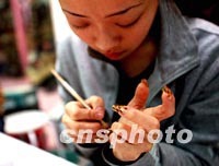 圖:涂畫指甲的時(shí)尚女孩兒 2002年01月24日 15:28 ![]() 一位女孩二十四日在北京華威商城的“美甲”店,學(xué)習(xí)為假指甲描畫花紋,F(xiàn)代的北京女孩不僅經(jīng)常光顧美容院進(jìn)行皮膚護(hù)理,而且日益視指甲的護(hù)理與修飾為時(shí)尚。中新社圖 劉殊瑾 攝 |