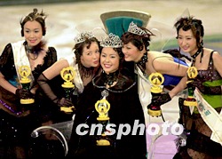 圖:國際華裔小姐新鮮出爐 2002年01月28日 16:13 ![]() 二零零二年度國際華裔小姐總決賽二十七日晚在廣州舉行,溫哥華小姐周雪獲得冠軍,多倫多小姐白穎茵(左二)獲得亞軍,吉隆坡小姐符愫娛(右二)獲得季軍。中新社記者 梁永強(qiáng) 攝 |