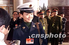 圖:宋祖英出席九屆全國人大五次會議 2002年03月05日 15:37 ![]() 解放軍代表、著名歌唱演員宋祖英五日出席在北京人民大會堂舉行的中國第九屆全國人大第五次會議。中新社記者 毛建軍 攝