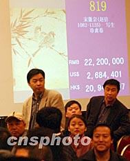 多圖:神秘青年天價(jià)買走宋徽宗《寫(xiě)生珍禽圖》 2002年04月23日 22:36 ![]() 宋徽宗親筆畫(huà)《寫(xiě)生珍禽圖》二十三日在北京拍賣會(huì)上以兩千三百萬(wàn)元人民幣的天價(jià)創(chuàng)下中國(guó)古字畫(huà)的最高價(jià)格。圖為激烈的競(jìng)拍場(chǎng)面。中新社圖 武仲林 攝 ![]() 一位不愿透露身份的神秘人物二十三日在北京中國(guó)嘉德春季拍賣會(huì)上以兩千三百萬(wàn)元人民幣的天價(jià)競(jìng)得《寫(xiě)生珍禽圖》。這幅從海外征集歸來(lái)的稀世珍寶是世存十三件宋徽宗親筆畫(huà)之一。圖為神秘得主競(jìng)買成功后掩面離開(kāi)拍賣場(chǎng)。中新社圖 武仲林 攝 ![]() 亡國(guó)皇帝宋徽宗國(guó)寶畫(huà)卷《寫(xiě)生珍禽圖》,日前驚現(xiàn)北京,參加四月嘉德國(guó)際春季拍賣。亡于千年前“靖康之恥”的宋徽宗趙佶,史稱治國(guó)無(wú)能的大藝術(shù)家皇帝,傳世僅十九件畫(huà)卷價(jià)值連城。圖為卷首有乾隆皇帝題寫(xiě)的《杏苑春聲》。中新社記者 賈國(guó)榮 攝 ![]() 亡國(guó)皇帝宋徽宗國(guó)寶畫(huà)卷《寫(xiě)生珍禽圖》,年初由海外神秘人士出手,日前驚現(xiàn)北京,參加四月嘉德國(guó)際春季拍賣。亡于千年前“靖康之恥”的宋徽宗趙佶,史稱治國(guó)無(wú)能的大藝術(shù)家皇帝,傳世僅十九件畫(huà)卷價(jià)值連城。中新社記者 賈國(guó)榮 攝 中新社北京四月二十三日電(記者于晶波)今天中午十二時(shí),從海外征集歸來(lái)的稀世珍品——宋徽宗親筆畫(huà)《寫(xiě)生珍禽圖》在中國(guó)嘉德春拍會(huì)上被一位二十多歲神秘青年買走。這位青年開(kāi)出的二千三百萬(wàn)元(人民幣,下同)的競(jìng)拍天價(jià)創(chuàng)造了中國(guó)書(shū)畫(huà)拍賣史的最高記錄。 今天上午十一時(shí)四十分左右,當(dāng)拍賣師宣布完《寫(xiě)生珍禽圖》的起拍價(jià)為七百八十萬(wàn)元后,立即有人舉拍應(yīng)價(jià)。十幾分鐘后,拍賣價(jià)格輕易突破一千萬(wàn)元和兩千萬(wàn)元大關(guān)。 記者在現(xiàn)場(chǎng)看到,當(dāng)《寫(xiě)生珍禽圖》的價(jià)格升至一千五百萬(wàn)的時(shí)候,競(jìng)價(jià)方主要在幾位電話委托的買家之間進(jìn)行。這幾位電話委托買家迅速將該畫(huà)價(jià)格推至一千九百萬(wàn)。正當(dāng)場(chǎng)外激烈競(jìng)價(jià)不分高低時(shí),場(chǎng)內(nèi)的一匹黑馬(競(jìng)拍號(hào)為九三六號(hào)的男青年)叫價(jià)介入,最后以二千三百萬(wàn)的天價(jià)將國(guó)寶《寫(xiě)生珍禽圖》買走。 目前,這位聲稱不接受任何現(xiàn)場(chǎng)采訪的神秘買家的身份尚難確定。嘉德公司副總經(jīng)理寇勤也表示不清楚這位買家究竟是來(lái)自國(guó)內(nèi)還是海外。 在海外流落多年的《寫(xiě)生珍禽圖》長(zhǎng)卷是宋徽宗存世僅十二件的親筆畫(huà)之一,與宋高宗的《養(yǎng)生論》卷同為國(guó)寶級(jí)文物。參加拍賣會(huì)的許多文物愛(ài)好者都希望這件國(guó)寶能借春拍會(huì)的機(jī)會(huì)被留在國(guó)內(nèi),因此他們希望今天的神秘買家來(lái)自國(guó)內(nèi)。 嘉德公司總經(jīng)理王雁南對(duì)今天《寫(xiě)生珍禽圖》的天價(jià)拍出表示滿意。據(jù)了解,此前嘉德公司對(duì)該畫(huà)的估價(jià)僅為九百萬(wàn)元。