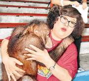 "肥姐"沈殿霞為拍劇與猩猩親熱惹皮膚過敏(圖) 2002年05月24日 09:07 ![]() 中新網(wǎng)香港5月24日消息:“肥肥”沈殿霞最近為新加坡劇集《肥肥一家親續(xù)集》到廣東番禺拍外景,劇情描述本是頂級廚師的肥肥,被欠下高利貸之兄弟連累,為逃避追殺,逃到番禺野生動物園做喂飼員,跟猩猩做對手戲。 雖然肥肥鐘意動物,但對猩猩仍有些害怕,拍戲前肥肥喂粟米球與甘蔗給猩猩吃來培養(yǎng)感情,以致猩猩特別入戲,抱著肥肥不放。雖然事前動物園工作人員曾給猩猩洗過澡,但由于猩猩有體臭,肥肥又要跟猩猩做不少親熱動作,如面貼面等,讓肥肥覺得好困難,拍完后肥肥急忙返酒店洗澡,但仍引起皮膚過敏。 據(jù)香港媒體報道,這次到番禺,有關(guān)方面安排肥肥入住總統(tǒng)套房,據(jù)悉,之前澳門特首何厚鏵也入住過,所以肥肥還在房間內(nèi)拍照留念。