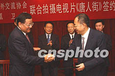 組圖:電視片《唐人街》簽約儀式在京舉行 2002年06月21日 14:59 ![]() 中國海外交流協(xié)會和香港鳳凰衛(wèi)視二十一日在北京舉行關(guān)于聯(lián)合拍攝電視片《唐人街》簽約儀式。圖為中國海外交流協(xié)會副會長劉澤彭(右)與鳳凰衛(wèi)視董事局主席劉長樂在簽約儀式上。作者:武仲林