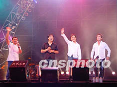 圖:周華健等歌星為深圳電話號(hào)碼升八位放歌 2002年06月29日 21:36 ![]() 著名歌星周華健、齊秦、李宗盛、張信哲等昨晚在深圳為電話號(hào)碼升八位而放歌。圖為四大歌星齊齊亮相。作者:張國(guó)棟
