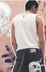 日系“仿古流”街頭風(fēng)源自大阪,在服飾融入平安時代的傳統(tǒng)圖騰,包括華麗的刺繡、代表武士精神的漢字、浮世繪、仿補(bǔ)丁等元素,帶有濃郁的禪風(fēng)古意,與東京原宿的街頭文化迥異。