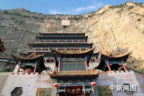雄偉壯麗的大羅宮,兩側(cè)是神秘奇險的白云洞和白云庵。白云洞位于大羅宮北側(cè),百米崖壁上有一洞口,柴扉半啟,是資深高道閉關(guān)辟谷之所。這里,陰雨前常有白云飄出,故稱白云洞。清代乾隆年間介休名士王佑曾賦“深山多白云,洞在云深處,竟日寂無人,白云自來去”的詩句,道出了這一景觀的奇妙和獨(dú)特。白云庵深藏于百米懸崖上一天然石洞中,內(nèi)有釋迦牟尼和文殊、普賢塑像,為宋代風(fēng)格。塑像身后有6塊0.6平方米的石板,上面刻有《金剛經(jīng)》經(jīng)文,雖年深日久,但保存基本完好。在此原無徑可尋的懸崖絕壁之上造像、勒石,其難度之大可想而知。古人那種不畏艱險的執(zhí)著追求,不禁使人嘆服!現(xiàn)在已筑起了懸空通道,供游客觀賞此庵。