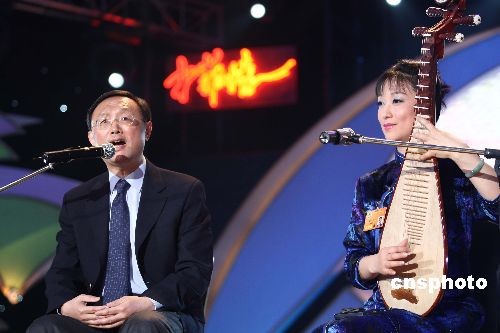 三月八日晚,慶祝“三八”婦女節(jié)文藝晚會(huì)在全國政協(xié)委員駐地上演,中國外交部部長楊潔篪與中國曲藝家協(xié)會(huì)副主席,蘇州市評(píng)彈團(tuán)團(tuán)長助理盛小云合作演出評(píng)彈,為出席兩會(huì)的女委員獻(xiàn)曲。中新社發(fā) 盛佳鵬 攝