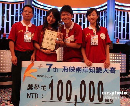 來自廣州中山大學(xué)的選手黃牧云 、萬昊 、施其靚(右一至右三)奪得總分第一并獲得十萬元新臺幣的獎學(xué)金。中新社發(fā) 耿軍 攝