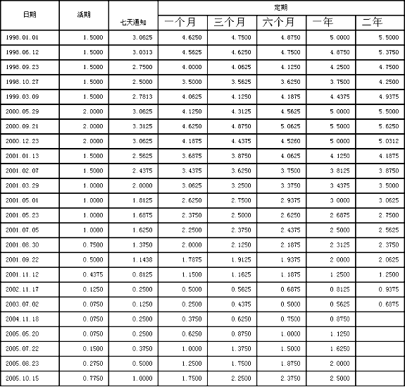 1998年以來境內(nèi)美元存款利率調(diào)整表