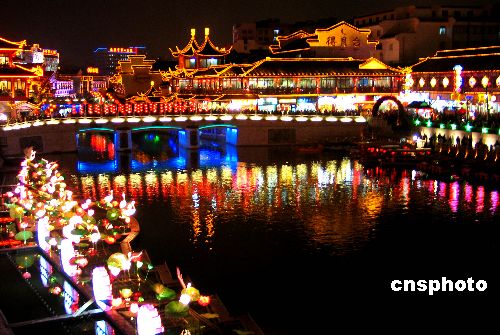 南京夫子廟宛如燈的海洋。新春佳節(jié)以來,以“魅力的秦淮燈彩,迷人的槳聲燈影”為主題的2006年中國南京夫子廟燈會,讓120余萬人次的南京市民及中外游客感受到“秦淮燈火甲天下”的美麗盛景。據(jù)悉,2006年中國南京夫子廟燈會將于2月15日結(jié)束。 作者:鐘山
