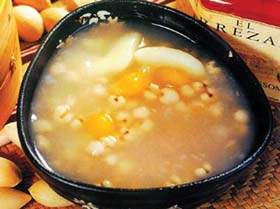 【制作】將糯米搗碎,薏米仁洗凈,紅棗去核后一同入鍋內(nèi),加清水適量煮粥,待粥煮至濃稠時,放入適量紅糖再煮片刻。