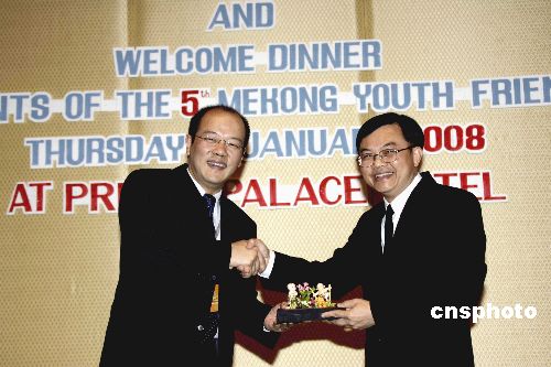 一月十七日,泰國社會發(fā)展與人類保障部副部長蓬得·炳巴提在曼谷禮節(jié)性會見了來自大湄公河次區(qū)域的中國、緬甸、泰國、柬埔寨、老撾和越南六國的青年代表,并分別與中國等六國青年代表團(tuán)合影。中新社發(fā) 孫宇挺 攝