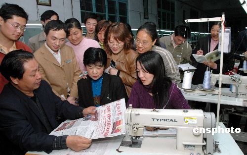 10月22日晚,山西運城一民營企業(yè)的員工在車間學(xué)習(xí)“十七大”會議精神,并進行討論發(fā)言。中新社發(fā) 黃文鵬 攝