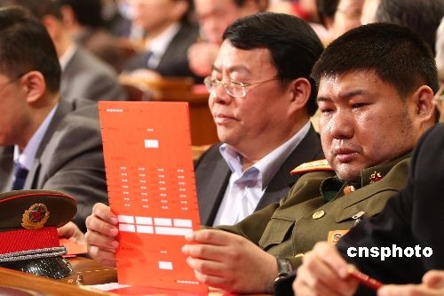 全國(guó)政協(xié)選舉 毛新宇細(xì)覽選票
