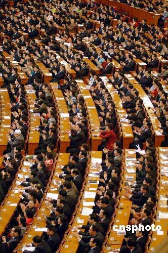 圖:代表鼓掌祝賀吳邦國再次當(dāng)選委員長
