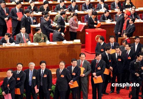 圖:人大代表排隊進行表決和選舉