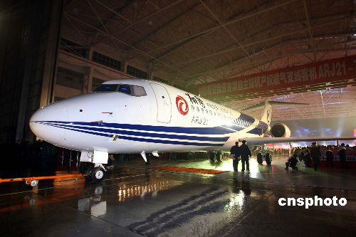 中國首架自主研制、擁有完全自主知識(shí)產(chǎn)權(quán)的新型渦扇支線客機(jī)ARJ21-700飛機(jī)28日在上海首飛。