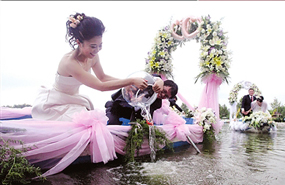 水下婚禮、自行車婚禮、熱氣球婚禮……現(xiàn)在婚禮上的花樣越來越多,而在婚禮現(xiàn)場上演一場屬于自己的愛情電影,如今成了80后白領(lǐng)新人的最新流行時尚……