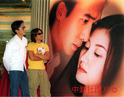 影星梁朝偉(左)、歌星馮德倫(右)二十三日在香港出席電影《俠骨仁心》慈善接觸記者會。首映門票將捐贈兒童癌病基金作慈善用途。中新社傳真 鄧慶樂攝
