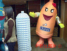 27個國家和地區(qū)17日同步公布2000年杜蕾斯全球性調(diào)查報告結(jié)果,香港晉級為亞洲第二最佳情人,充分反映現(xiàn)代人的性觀念和態(tài)度,安全套公仔在記者會上宣傳正確的性愛觀念。中新社傳真洪少葵攝