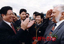 二十日,全國政協(xié)副主席王兆國(左一)與出席世界客屬第十六屆懇親大會的海外、境外客屬團體代表親切交流。中新社記者 劉可耕 攝