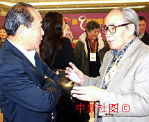 第九屆中國金雞百花電影節(jié)頒獎儀式二十一日在廣西南寧市舉行,來自中國各地的著名電影演員匯聚在一起。圖為中國著名電影演員王鐵成和葛存壯在一起交談。中新社記者 錢興強 攝