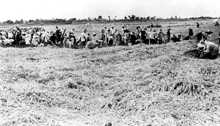 圖文:雞公山水稻畝產(chǎn)四萬八真相 2000年6月13日 16:36 ![]() 安徽省樅陽縣一塊號稱畝產(chǎn)1·6萬斤的 “衛(wèi)星田”。田里的稻子是從各地移來的 ![]() 大躍進(jìn)中,農(nóng)民表決心。照片據(jù)《圖片中國百年史》 張勝林(河南信陽) 。保梗担改辏乖拢比,信陽縣雞公山人民公社新集大隊(duì)放出河南省水稻畝產(chǎn)特大“衛(wèi)星”:6畝6分3厘干部水 稻試驗(yàn)田總產(chǎn)324375·5斤,平均畝產(chǎn)48925·7斤。這顆大“衛(wèi)星”升天后,新華社隨即發(fā)了消息,轟動(dòng)全國。 全省各級領(lǐng)導(dǎo)親臨參觀和總結(jié)經(jīng)驗(yàn),9月9日《河南日報(bào)》第二版以“雞公山上紅旗插,水稻畝產(chǎn)四萬八”的醒目標(biāo)題,對大 “衛(wèi)星”的組織施放作了詳細(xì)報(bào)道。 這個(gè)被大躍進(jìn)狂風(fēng)吹起來的水稻“衛(wèi)星”,雖在當(dāng)時(shí)被歌頌為信陽人民農(nóng)業(yè)大躍進(jìn)的偉大創(chuàng)舉,卻留下了一個(gè)謎 :照“衛(wèi)星”田里的水稻總產(chǎn)量計(jì)算,那么,這塊“衛(wèi)星”田平均每平方米就得產(chǎn)出稻谷73斤。然而,73斤稻谷就是放在 一平方米的空地里,也要堆出一定高度,何況稻谷結(jié)在稻穗上,直徑3毫米左右的稻莖又如何承受得了呢? 為了解開這個(gè)謎,我們對當(dāng)年目睹現(xiàn)場的一些同志進(jìn)行了反復(fù)調(diào)查訪問。在調(diào)訪過程中,這些同志不僅幫助我們 弄清了雞公山水稻畝產(chǎn)“四萬八”的真相,而且訴說了雞公山人民當(dāng)年吞下這個(gè)苦果的難言之苦。 信陽縣越改越大的躍進(jìn)規(guī)劃 。保梗担纺辏抨柨h和全國一樣,勝利實(shí)現(xiàn)和超額完成了國民經(jīng)濟(jì)第一個(gè)5年計(jì)劃,各條戰(zhàn)線出現(xiàn)了蓬勃發(fā)展的 局面。然而,由于從上到下對成績的宣傳夸張,使一些干部的頭腦發(fā)熱,在指導(dǎo)方針上出現(xiàn)了急于求成的“左”的冒進(jìn)。19 58年2月26日,中共信陽縣委召開擴(kuò)大會(huì)議,制定并通過了《信陽縣全面躍進(jìn)20條規(guī)劃》,號召和動(dòng)員全縣人民投入到 大躍進(jìn)的洪流之中。 。保梗担改辏翟拢h的八大二次會(huì)議通過總路線:“鼓足干勁,力爭上游,多快好省地建設(shè)社會(huì)主義”,在信陽 縣宣傳貫徹后,信陽掀起了大躍進(jìn)的高潮。同月底,中共信陽縣委、縣人委對《信陽縣全面躍進(jìn)20條規(guī)劃》進(jìn)行了補(bǔ)充修改 ,把1958年全縣糧食總產(chǎn)量從原規(guī)劃的8·5億斤提高到“保證實(shí)現(xiàn)14億斤,爭。保竷|斤”(這樣驚人的數(shù)字,信陽 縣不僅當(dāng)年沒有實(shí)現(xiàn),就是時(shí)隔30多年后農(nóng)業(yè)年景比較好的1996年,全縣糧食總產(chǎn)量也才達(dá)到9·5億斤,為1958 年規(guī)劃14億斤的67·8%)。同時(shí),中共信陽縣委還提出“十年規(guī)劃,一年實(shí)現(xiàn)”的躍進(jìn)口號。 外地衛(wèi)星的刺激 1958年6月,廣東省早稻畝產(chǎn)82525斤和河南省西平縣小麥畝產(chǎn)7320斤,這兩顆“衛(wèi)星”消息傳到 信陽縣后,信陽縣感到鼓舞和震動(dòng)。7月5日,中共信陽縣委召開擴(kuò)大會(huì)議,縣委提出:“必須認(rèn)識(shí)到今年是農(nóng)業(yè)生產(chǎn)大躍進(jìn) 的一年,不是要求增產(chǎn)幾成的問題,而是要翻幾番。因此,必須鼓足干勁,爭取更大勝利”。為了放出信陽縣的農(nóng)業(yè)高產(chǎn)“衛(wèi) 星”,縣委要求“樹立敢想、敢說、敢作、敢為的前進(jìn)思想,從而解放思想,破除迷信”。 7月,全國宣傳貫徹毛澤東主席關(guān)于把工、農(nóng)、商、學(xué)、兵組成為一個(gè)大公社的指示,信陽縣聞風(fēng)而動(dòng),在全信 陽地區(qū)率先建立人民公社。7月22日,中共信陽縣委在雞公山召開擴(kuò)大會(huì)議,決定撤銷全縣32個(gè)鄉(xiāng)、鎮(zhèn)及一個(gè)辦事處,成 立12個(gè)人民公社?h委要求,各公社要借人民公社化的東風(fēng),更好組織農(nóng)業(yè)生產(chǎn)大躍進(jìn),并示意試辦農(nóng)業(yè)“衛(wèi)星”田塊。 縣委擴(kuò)大會(huì)議結(jié)束后,各公社開始籌劃具有本地特色的農(nóng)業(yè)“衛(wèi)星”,棉花、玉米、紅薯等都被列入“衛(wèi)星”計(jì) 劃之列。 雞公山準(zhǔn)備水稻“衛(wèi)星” 在籌劃“衛(wèi)星”時(shí),地處豫鄂交界的雞公山人民公社黨委提出,淮河北的西平縣能放出小麥畝產(chǎn)七千三的全國大 “衛(wèi)星”,我們淮河南的雞公山為何不能利用我們盛產(chǎn)水稻的優(yōu)勢,放出水稻高產(chǎn)“衛(wèi)星”?只要有雄心,思想再解放,“ 衛(wèi)星”定能升天。為了選準(zhǔn)“衛(wèi)星”的試點(diǎn),公社黨委曾幾次召開會(huì)議研究,最終選擇新集大隊(duì)的一塊6畝6分3厘干部試驗(yàn) 田作為“衛(wèi)星”點(diǎn)。 這塊試驗(yàn)田在5月5日秧苗移栽時(shí),采用了3×3(行距、株距各3寸)的密植法,加之向這塊試驗(yàn)田投放的肥 料較多,公社黨委因之認(rèn)為,這為我們秋收放“衛(wèi)星”奠定了基礎(chǔ)(經(jīng)過實(shí)踐證明,3×3的密植法是一種違反科學(xué)的技術(shù)躍 進(jìn),它不僅破壞了光合作用,而且也不利于農(nóng)田管理,但3×3的密植法當(dāng)時(shí)卻作為農(nóng)業(yè)現(xiàn)代化在全縣推廣)。 “調(diào)兵借將” 。冈孪卵,水稻已經(jīng)基本成熟,臨近收割。雞公山公社黨委于8