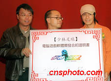 周星馳出席「少林足球」電腦游戲軟體開發(fā)合約書簽約儀式