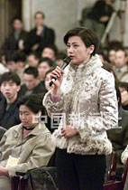 九屆全國(guó)人大四次會(huì)議七日下午舉行記者招待會(huì),國(guó)家發(fā)展計(jì)劃委員會(huì)主任曾培炎與記者見(jiàn)面。圖為香港鳳凰衛(wèi)視著名記者吳小莉獲得提問(wèn)機(jī)會(huì)。中新社記者 毛建軍 攝