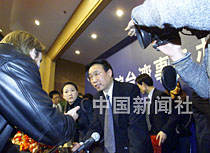 海協(xié)會(huì)秘書長李亞飛十六日在出席國臺(tái)辦的新聞發(fā)布會(huì)后,被中外記者包圍采訪。中新社記者 滿會(huì)喬 攝