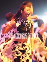 2000年中國歌曲排行榜頒獎(jiǎng)晚會(huì),二十三日晚在頒獎(jiǎng)裝飾一新的首都體育館舉行,并評(píng)出中國十大金曲。 圖為晚會(huì)載歌載舞的熱鬧場面。 中新社記者 錢興強(qiáng) 攝