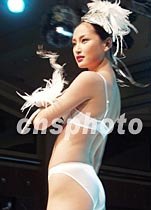 九日晚,在北京嘉里中心飯店舉行的“時尚大蓬車”內(nèi)衣時裝秀,吸引了來自京城各處的觀眾,著名內(nèi)衣品牌“黛安芬”展開中國市場的大型推廣活動。圖為名模趙俊模特展示內(nèi)衣新款作品。中新社記者 錢興強(qiáng) 攝
