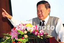 世界著名物理學(xué)家楊振寧先生,二十七日在北京市清華大學(xué)理學(xué)院作《量子化、對稱、相位因子——二十世紀(jì)理論物理學(xué)的主旋律》的報(bào)告,受到大學(xué)師生們的熱烈歡迎。中新社記者 張勤 攝