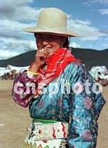一位藏北牧區(qū)的藏族女青年八月中旬到當雄縣參加物資交流會時,身穿華麗的藏袍,佩玉戴銀,面對客人保持純樸的笑容。中新社圖 趙偉 攝