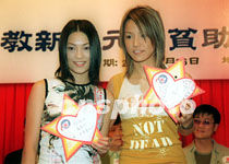 歌星歐倩怡、何韻詩11日在香港出席「星火行動」之粵北科教新紀元助學演唱會記者會。中新社傳真 鄧慶樂 攝