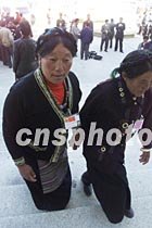 西藏自治區(qū)七屆人大四次會(huì)議13日拉薩舉行,出席會(huì)議的藏族婦女代表手挽手步入西藏人民大會(huì)堂。中新社記者 滿會(huì)喬 攝