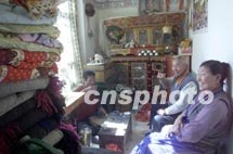 家住拉薩八廓街的藏民嘎色家依靠自編自賣藏式竹籃過著幸福的生活,嘎色在工作之余與鄰居暢飲青稞酒。中新社記者 滿會(huì)喬 攝