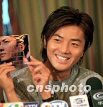 歌星鄭伊健向傳媒展示新唱片封套