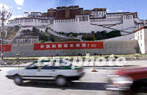 布達(dá)拉宮掛新標(biāo)語慶祝西藏和平解放五十周年