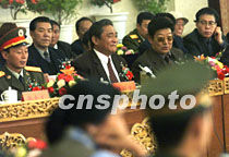 熱地說,統(tǒng)一與分裂是西藏最大的政治分野 2001年5月24日 07:25 ![]() 中國紀(jì)念西藏和平解放五十周年座談會(huì)五月二十三日在拉薩舉行,全國人大常委會(huì)副委員長帕巴拉·格列朗杰(右二)、西藏自治區(qū)人大主任熱地(右三)等出席座談會(huì)。中新社記者 滿會(huì)喬 攝