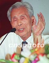 中國(guó)當(dāng)代著名畫(huà)家吳冠中一日在清華大學(xué)舉辦的“藝術(shù)與科學(xué)”國(guó)際學(xué)術(shù)研討會(huì)上,就“藝術(shù)與科學(xué)之間的關(guān)系”等問(wèn)題接受新聞媒體采訪。中新社記者 張勤 攝