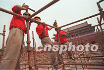 圖文:迎“三高”演唱會 紫禁城開始“整容” 2001年06月15日 07:34 ![]() 建筑工人連日在北京紫禁城午門前廣場搭臺,為六月二十三日世界三大歌王的演唱會抓緊施工。中新社記者 史利 攝
