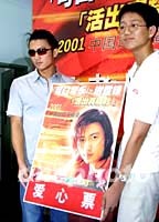 組圖:謝霆鋒在上海為演唱會(huì)做前期推廣 2001年07月19日 21:16 ![]() 香港歌手謝霆鋒七月十九日在上海為其演唱會(huì)做前期推廣。“可口可樂(lè)謝霆鋒活出真精彩2001中國(guó)巡回演唱會(huì)”將于七月二十八日在可容納八萬(wàn)人的上海體育場(chǎng)舉行。謝霆鋒希望屆時(shí)更多的歌迷能了解他、接近他。中新社記者 潘索菲 攝 ![]() 新天王謝霆鋒十九日在上海向上海慈善基金會(huì)慈善助學(xué)的受助學(xué)生代表贈(zèng)送本月二十八日在此間舉行的“可口可樂(lè)謝霆鋒活出真精彩演唱會(huì)”的門票。中新社記者 潘索菲 攝