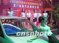 圖:汽車模特大賽在福州開幕 2001年07月29日 21:49 ![]() 汽車模特比美首度在廈門火爆開場,引起眾多青春女性的興趣。參賽的眾佳麗以汽車為主題競相比美,獲獎?wù)邔⒓釉谏蜿柵e行的首屆全國汽車模特大賽總決賽。中新社圖 李向陽 攝