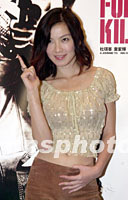 影星林熙蕾1日在香港出席電影《全職殺手》記者會,她擺出一副開槍的模樣,配合影片宣傳。中新社圖 鄧慶樂 攝